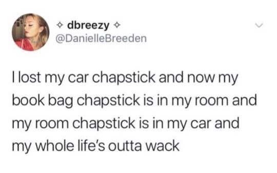 I Lost My Car Chapstick and Now My Purse Chapstick Is in My Room and My Room Chapstick Is in My Car and My Whole Life Is Just Messed Up Is the