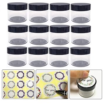Amazon.com : 20gram/20ml Round Clear Empty Container Jars with Black Screw Lids Bulk for Lotions, Lip Balm, Makeup Samples - BPA Free (12 Pack, Black) : Beauty